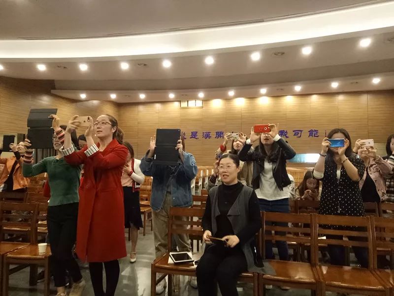 黄教授神奇的演示和精彩的解说,让在座的老师们忍不住站起来听讲,纷纷拍照留念。时代的进步和科技的发展,也给教师和教育带来了新的挑战和机遇,汉开书院以高瞻远瞩向时代看齐,用高度敏锐的嗅觉引入科技,努力带给学生新奇、高效的课堂体验。